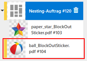 Wenn Sie die Einstellungen eines in einem Nesting-Auftrag enthaltenen Einzelauftrags ändern möchten, müssen Sie diesen aus dem Nesting-Auftrag entfernen. Ändern Sie dann die Einstellungen, und fügen Sie den Auftrag anschließend wieder zum Nesting-Auftrag hinzu.