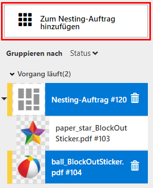 2. Klicken Sie auf die Schaltfläche [Zum Nesting-Auftrag hinzufügen], um den Auftrag hinzufügen.