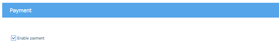Zapněte volbu [Povolit platbu]. Zákazníci musí zaplatit své objednávky před odesláním objednávek do internetového obchodu. Zákazníci mají k dispozici poskytovatele plateb, kteří jsou definováni pro webový server.