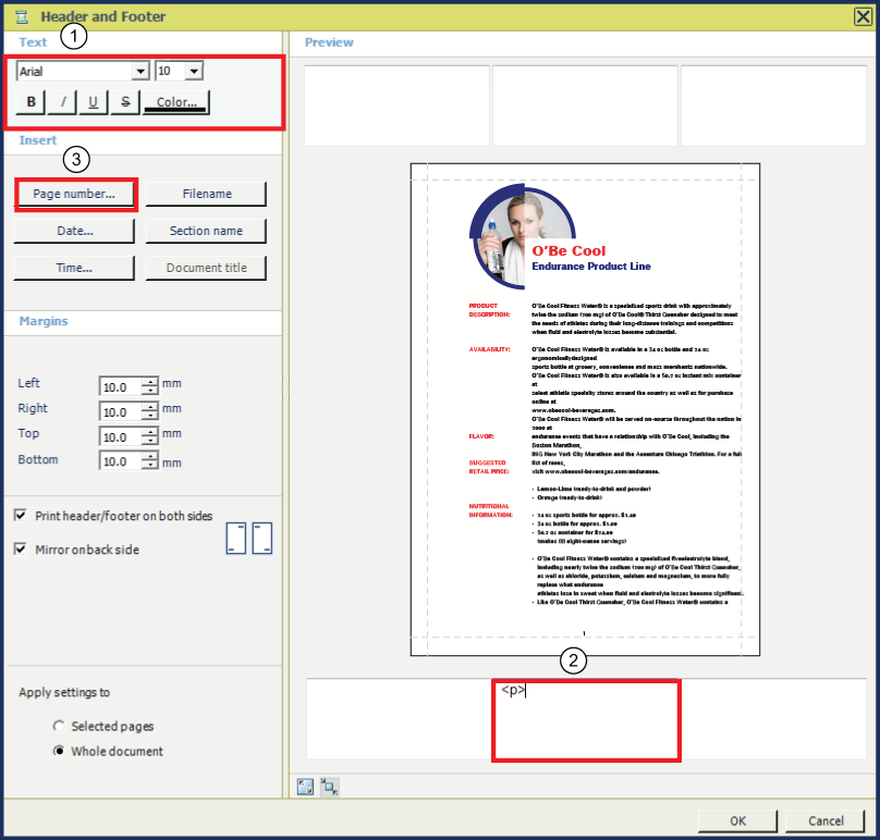 Click the [Page number...] button. Define your own settings, and click [OK].