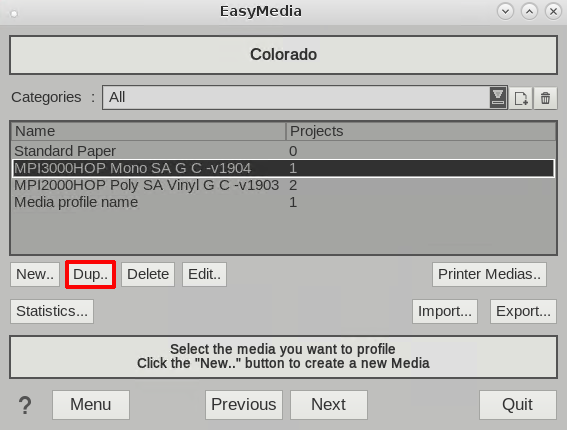 È anche possibile utilizzare un profilo supporti esistente come base e modificare le impostazioni in Caldera.