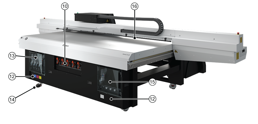 Există două locașuri de cerneală: locașul principal conține cerneală CMYK și sticla cu lichid de răcire; locașul secundar conține toate canalele de culoare acceptate suplimentar. |