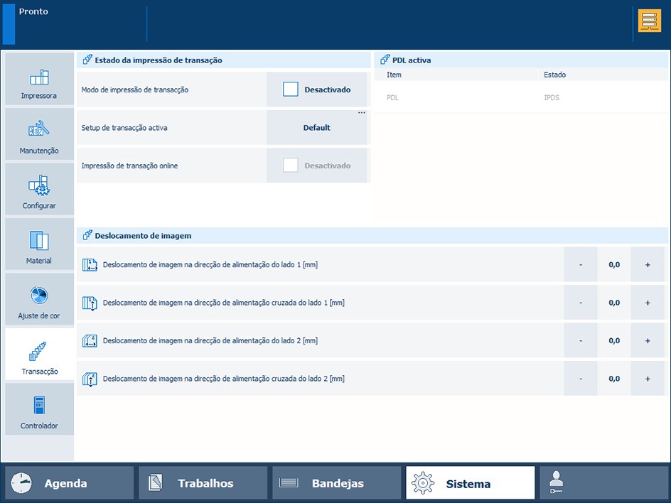 No caso de o modo de impressão de transação estar ativo e pretender ir para o modo de impressão de documento, siga esta instrução. Enquanto o modo de impressão de documento estiver ativo, a impressora não pode aceitar os trabalhos de impressão de transação.
