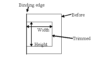 With Height and Width you specify the dimensions of the finished book after folding and cutting. If one-way trimming is requested, the Height parameter must not be used. If the Height parameter is present, an equal amount of trim is done at the top and the bottom of the book, to centre the book on the media.