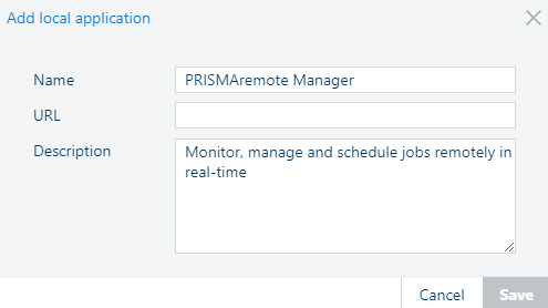 Dieses Feld ist optional, aber das Dialogfeld ist wie in der obigen Abbildung als Beispiel für PRISMAremote Manager bereits ausgefüllt.