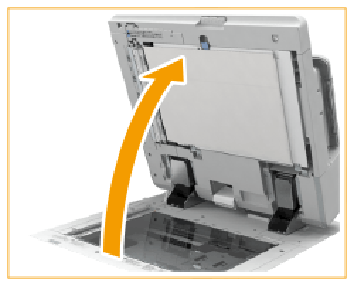 Schließen Sie den automatischen Vorlageneinzug sachte. Zur Vermeidung von Schäden an der Glasplatte und von Verletzungen schließen Sie die Abdeckung vorsichtig, und drücken Sie nicht darauf. |