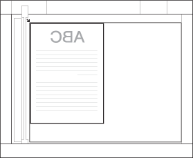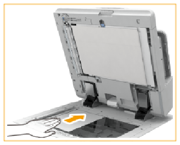 Platzieren Sie eine Vorlage mit der bedruckten Seite nach unten, und richten Sie sie aus. Die Position der Vorlage beeinflusst die Position von Heftung, Falzung und Lochung bei der Druckausgabe. |