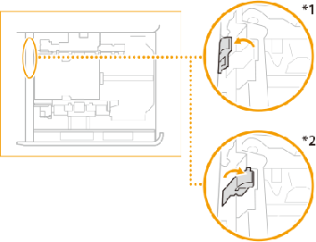 When you use the media paper of 351 g/m² (130 lb cover) or more, move the pressure switching lever to the 351-400 g/m² (130 lb cover - 148 lb cover) position. When you use the media that is lighter than 351 g/m² (130 lb cover), make sure to return the pressure switching lever to the original position (52-350 g/m²).