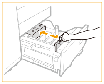 Squeeze the lever and slide the paper guides so that there is enough space to load the media. |