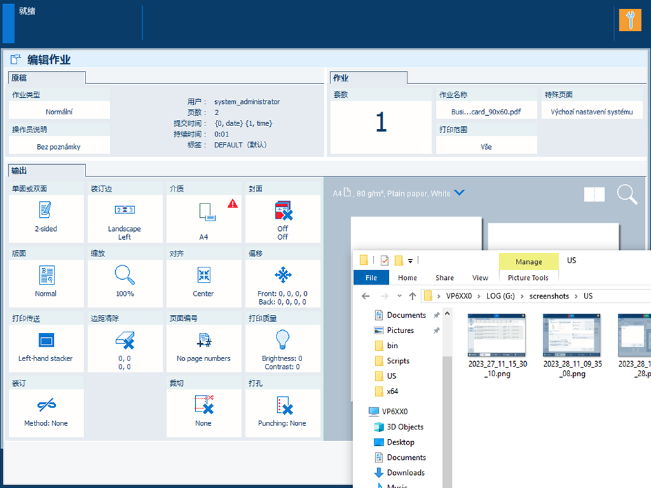 此过程显示了名片拼版的示例。名片印在双面纸上。修剪后,将创建不同的堆栈。最后,每个堆栈包含相同数量的名片。