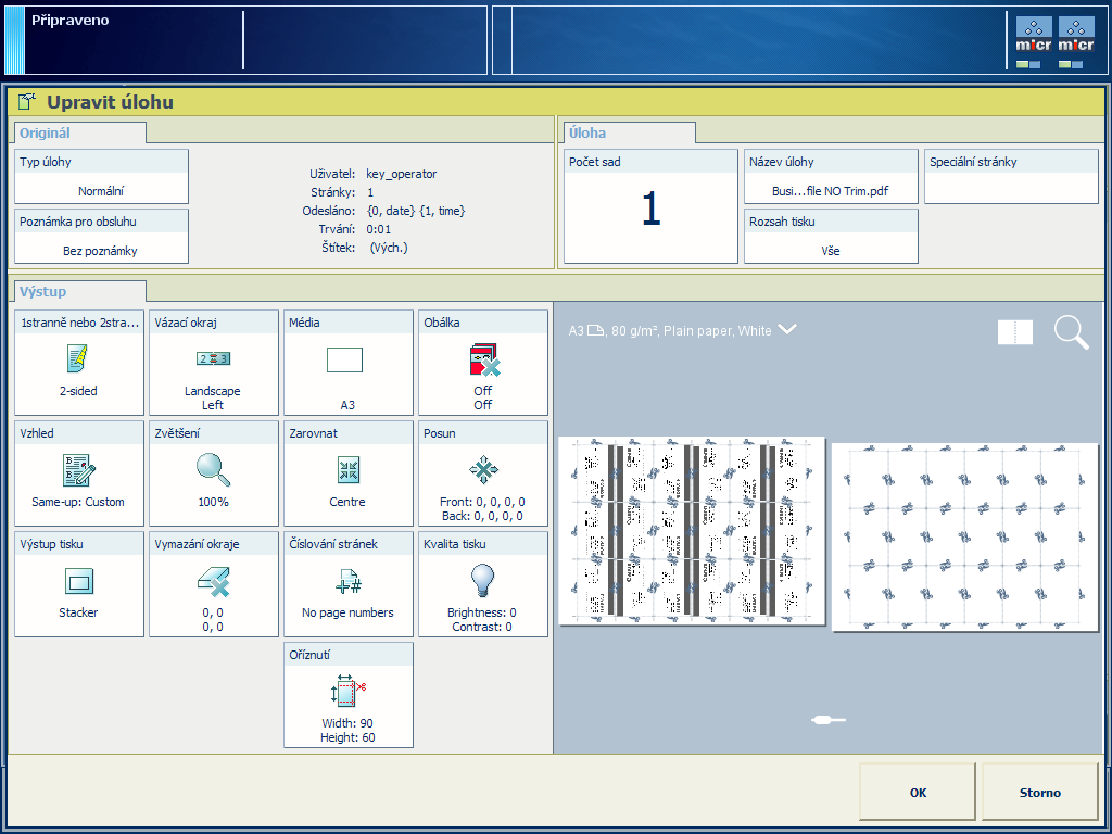 Vizitky jsou připraveny k tisku. Stiskněte [OK].
