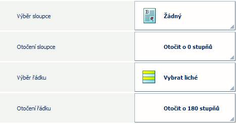 Rovněž je možné vybrat, převrátit a otočit řádky nebo sloupce. Tato nastavení rozvržení mohou být například užitečná, když má jedna strana vašich vizitek stejný vzor. Díky umístění stran se stejným vzorem vedle sebe je ořezávání méně náchylné k nepřesnostem.
