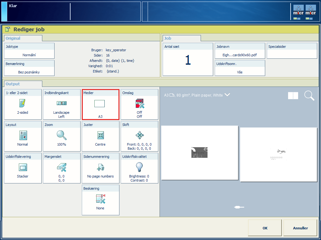 Tryk på [Rediger], eller dobbelttryk på jobbet for at åbne vinduet [Rediger].