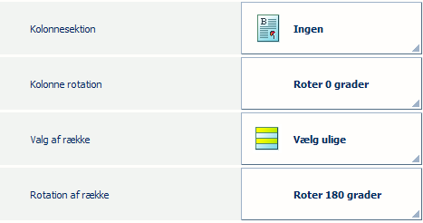 Det er også muligt at markere, dreje og rotere rækker og/eller kolonner. Disse layoutindstillinger kan f.eks. være nyttige, når én side af dine visitkort har samme mønster. Hvis du placerer sider med det samme mønster ved siden af hinanden, vil beskæringen være mindre tilbøjelig til at være upræcis.