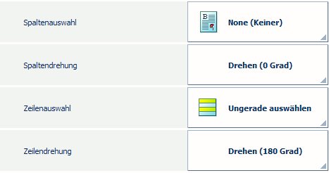 Es ist auch möglich, Zeilen und/oder Spalten auszuwählen, zu wechseln und zu drehen. Diese Layouteinstellungen können beispielsweise hilfreich sein, wenn eine Seite Ihrer Visitenkarten dasselbe Muster hat. Wenn die Seiten mit demselben Muster nebeneinander positioniert werden, ist das Zuschneiden weniger anfällig für Ungenauigkeiten.