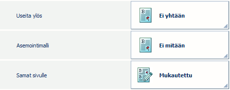Edistyneet asettelu- ja viimeistelyasetukset voivat olla hyödyllisiä esimerkiksi luotaessa erilaisia tuotetyyppejä, kuten käyntikortteja. Seuraavassa kuvattu menettely osoittaa, kuinka asemoinnista voidaan tehdä helposti muokattavaa lisäasetusten avulla.