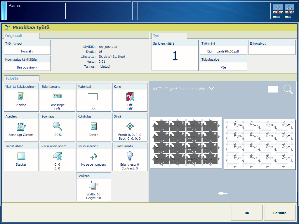 Käyntikortit ovat valmiita tulostettaviksi. Valitse [OK].