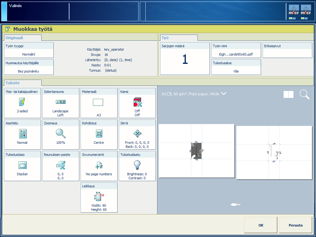 Kosketa [Muokkaa] tai avaa [Muokkaa] -ikkuna kaksoisnapauttamalla työtä.