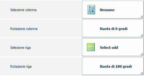 È anche possibile selezionare, capovolgere e ruotare righe e/o colonne. Ad esempio, queste impostazioni layout possono essere utili quando un lato dei biglietti da visita ha lo stesso motivo. Posizionando i lati con lo stesso motivo uno accanto all'altro è possibile rendere la rifilatura meno soggetta a imprecisioni.