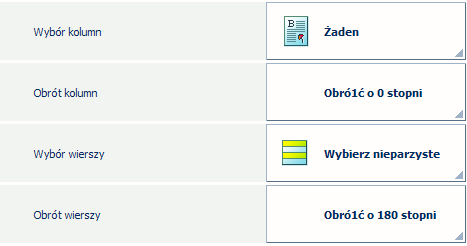 Możliwe jest również zaznaczanie, odwracanie i obracanie wierszy i/lub kolumn. Na przykład te ustawienia układu mogą być przydatne, gdy jedna strona wizytówek ma ten sam wzór. Umieszczenie boków z tym samym wzorem obok siebie sprawia, że przycinanie jest mniej podatne na niedokładności.