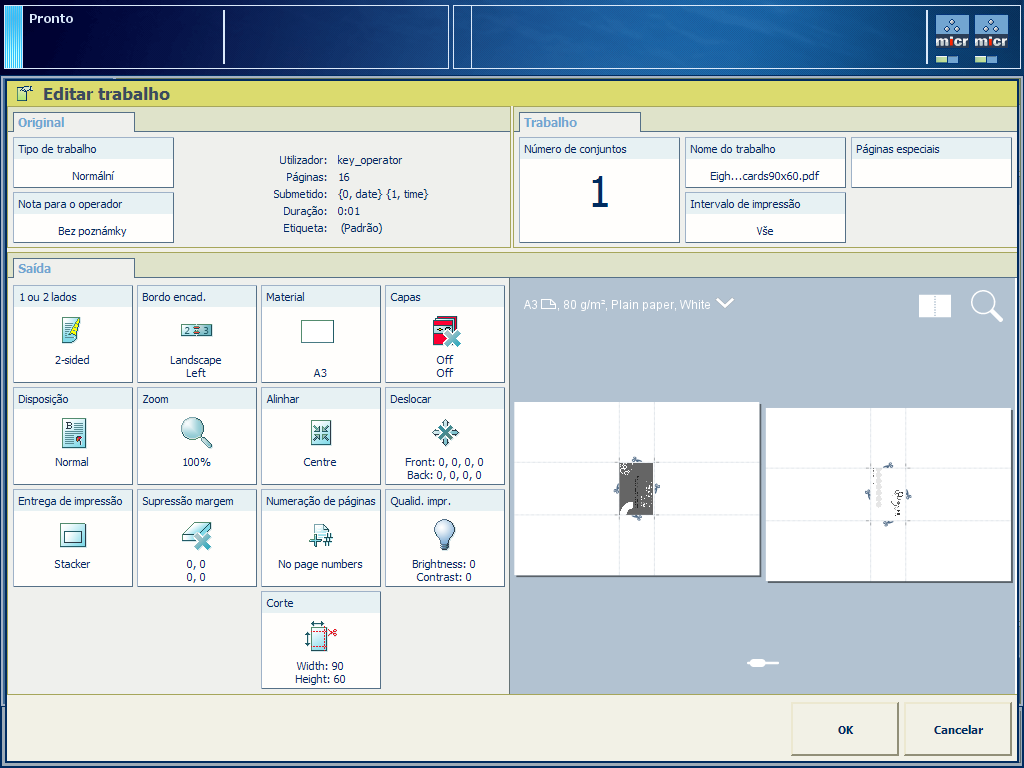 As definições avançadas de disposição e acabamento podem ser úteis para a criação de vários tipos de produtos, por exemplo, cartões de visita. O procedimento abaixo demonstra como as definições avançadas podem tornar a imposição facilmente personalizável.