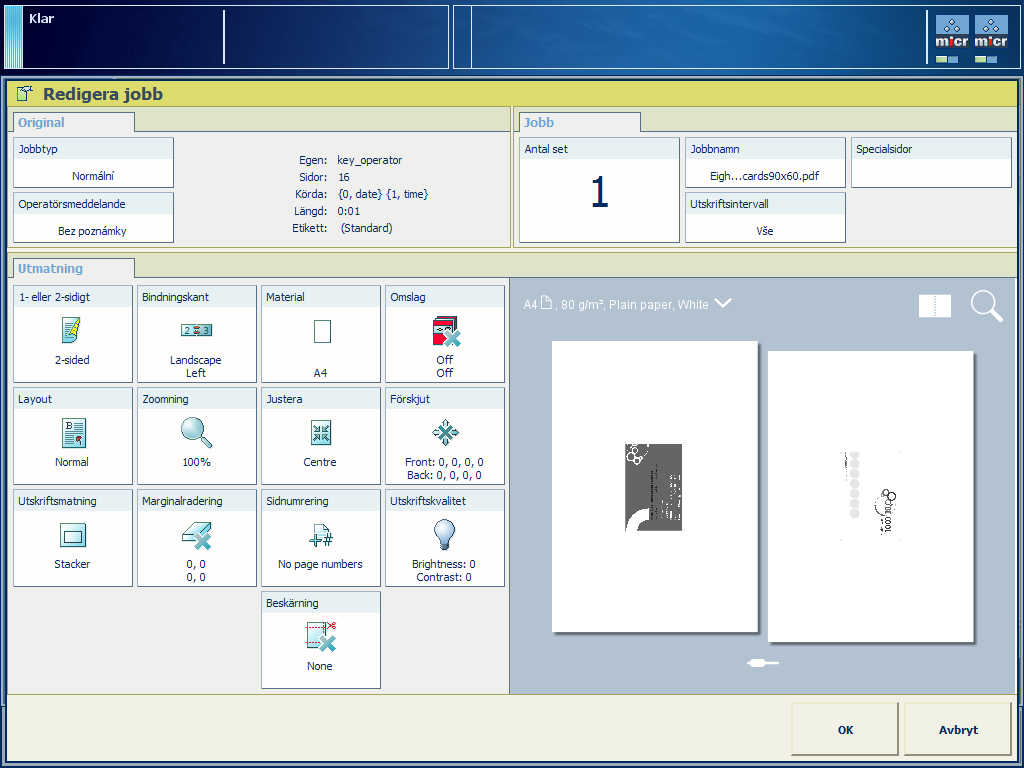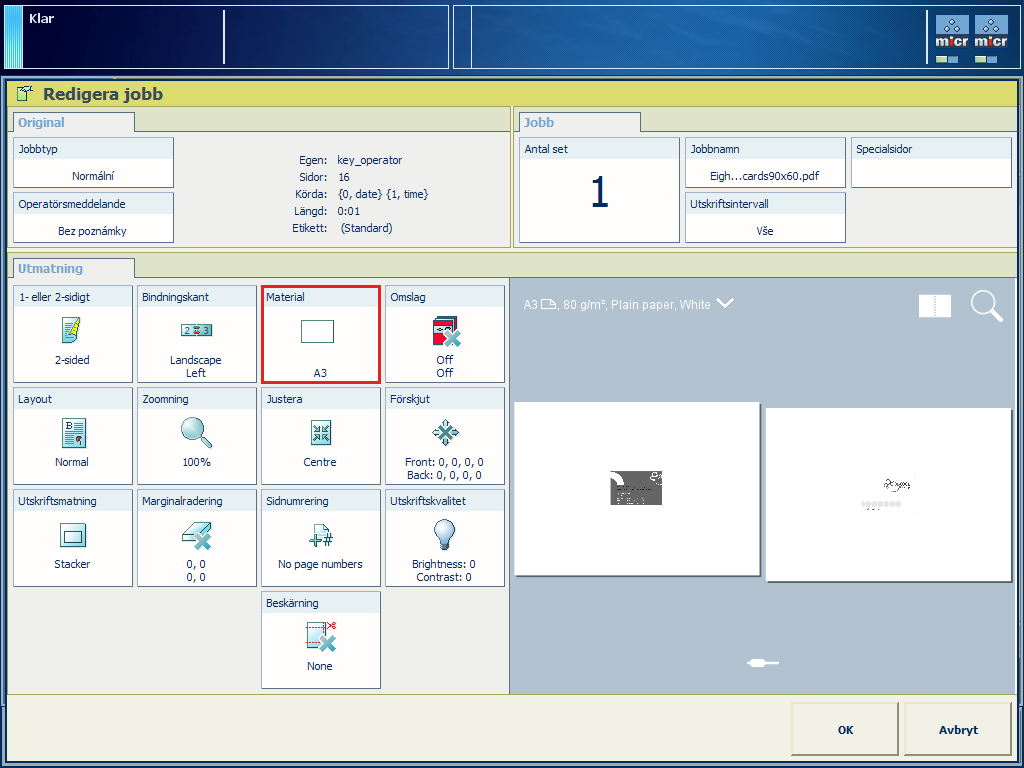 Tryck på [Redigera] eller dubbeltryck på jobbet för att öppna fönstret [Redigera].