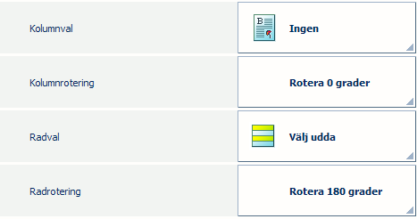 Det är också möjligt att välja, valsa och rotera rader och/eller kolumner. Dessa layoutinställningar kan till exempel vara användbara när ena sidan av dina visitkort har samma mönster. Genom att placera sidorna med samma mönster bredvid varandra blir trimningen mindre benägen att bli exakt.