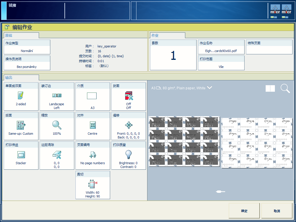 高级布局和修整设置可用于创建各种产品类型,例如名片。下面的过程演示了高级设置如何使拼版易于自定义。
