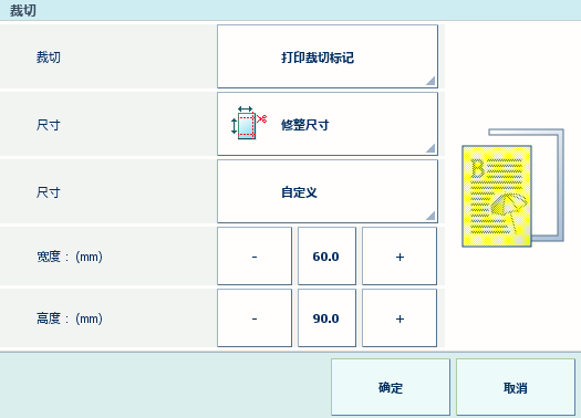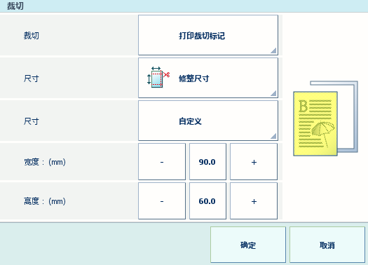 按可定义裁切后的纸张尺寸。下拉列表包含预定义的纸张尺寸,例如 A4。