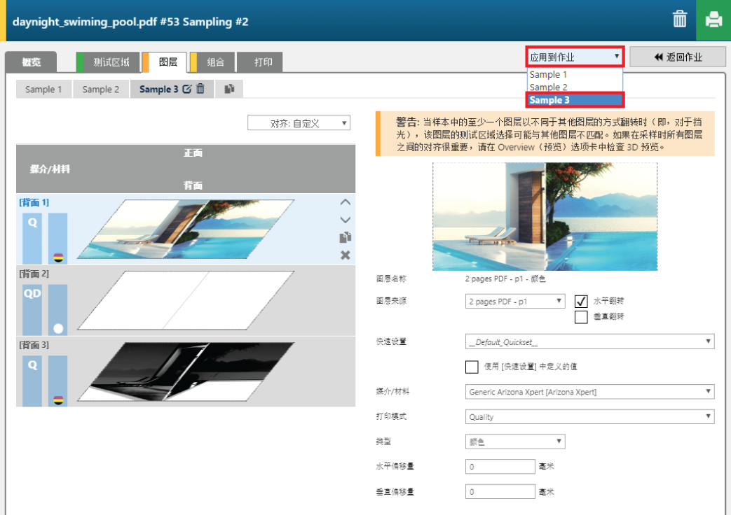 将样本的作业设置应用到配方