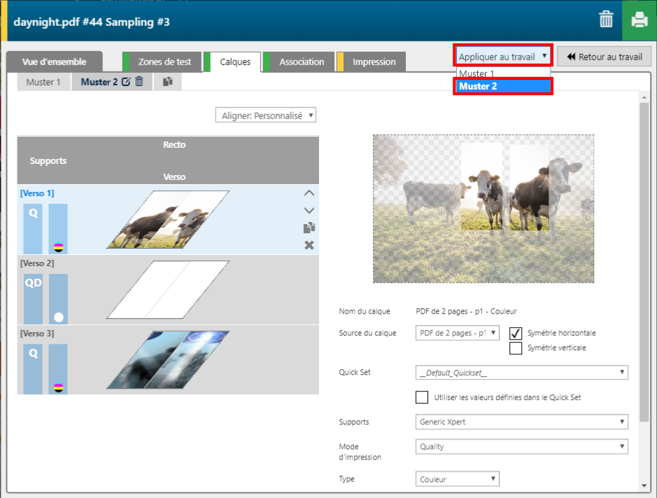 Le travail initial est alors mis à jour à l'aide des paramètres définis pour l'échantillon le plus satisfaisant.