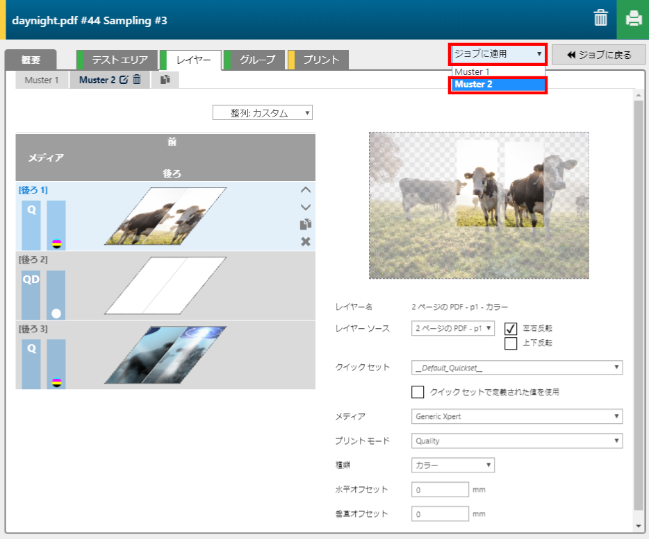 サンプルのジョブ設定をレシピに適用させる