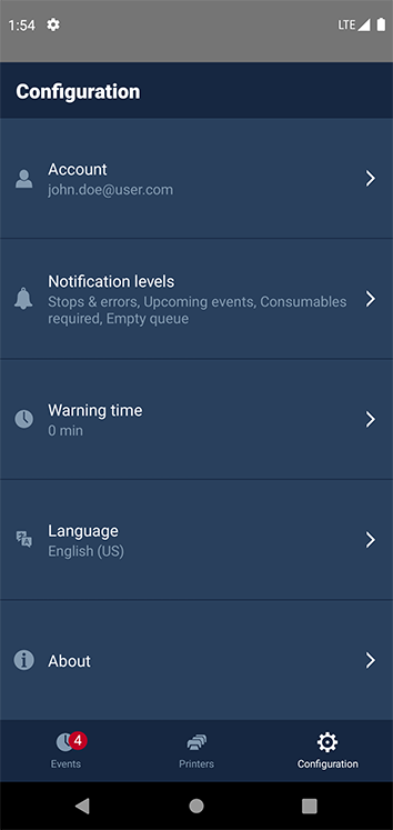 Aplikace PRISMAremote Monitoring umožňuje monitorovat tiskárny na chytrém telefonu dvěma způsoby.