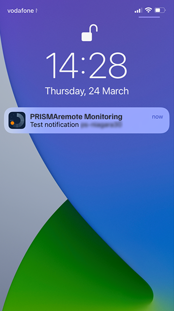 Tryk på konfigurationsikonet for at gå til konfigurationsskærmen for PRISMAremote Monitoring, hvor du kan vælge dine foretrukne indstillinger. |