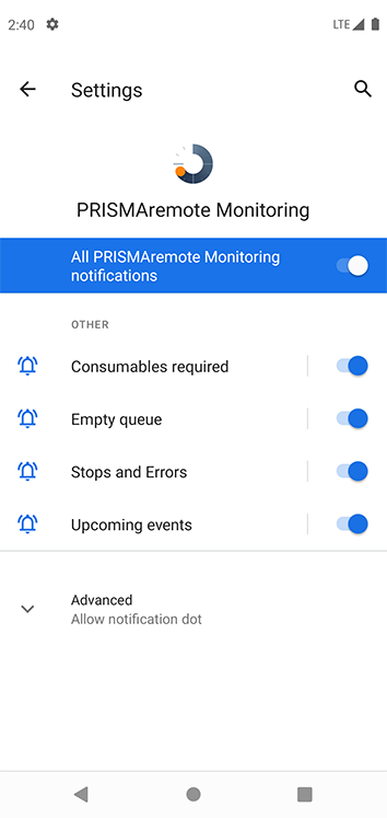PRISMAremote Monitoringilla voit valvoa tulostimia älypuhelimella kahdella tavalla.