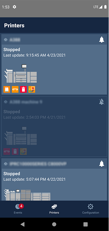 Med PRISMAremote Monitoring kan du overvåke skriverne på smarttelefonen din på to måter.