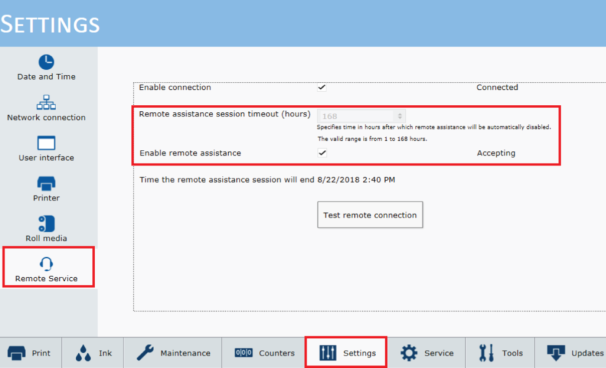 Varmista, että olet ottanut käyttöön Remote Service -yhteyden (katso Remote Service -yhteyden käyttöönotto).