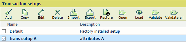 사용 가능한 모든 트랜잭션 설정을 검증할 수 있습니다.활성 PDL에 대해 유효성 검사 절차가 수행됩니다.보고서에는 트랜잭션 설정당 유효한 트레이와 잘못된 트레이 수가 표시됩니다.보고서에 잘못된 트랜잭션 설정이 표시되면 [확인] 기능을 사용하여 트레이별 문제를 검사합니다.
