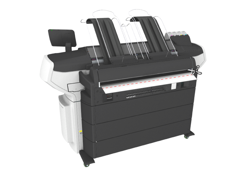사용자 정의 용지가 사용되는 경우 뒷면 출력함에서 수동으로 용지를 절단하라는 요청을 받을 수 있습니다.