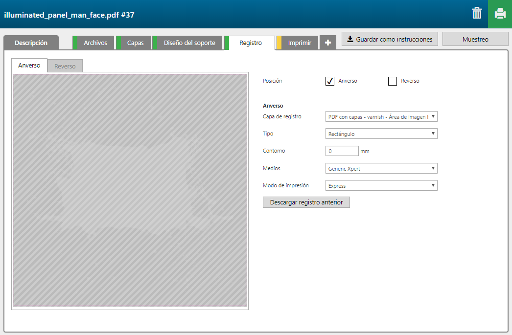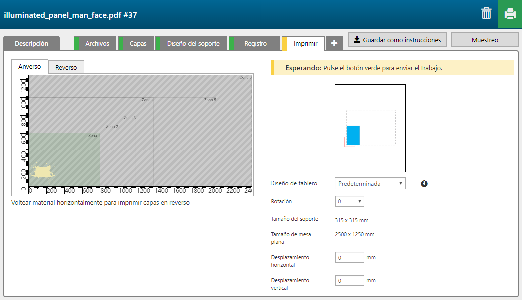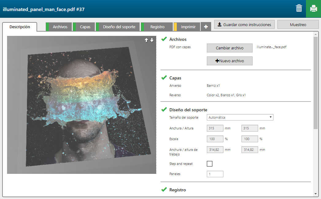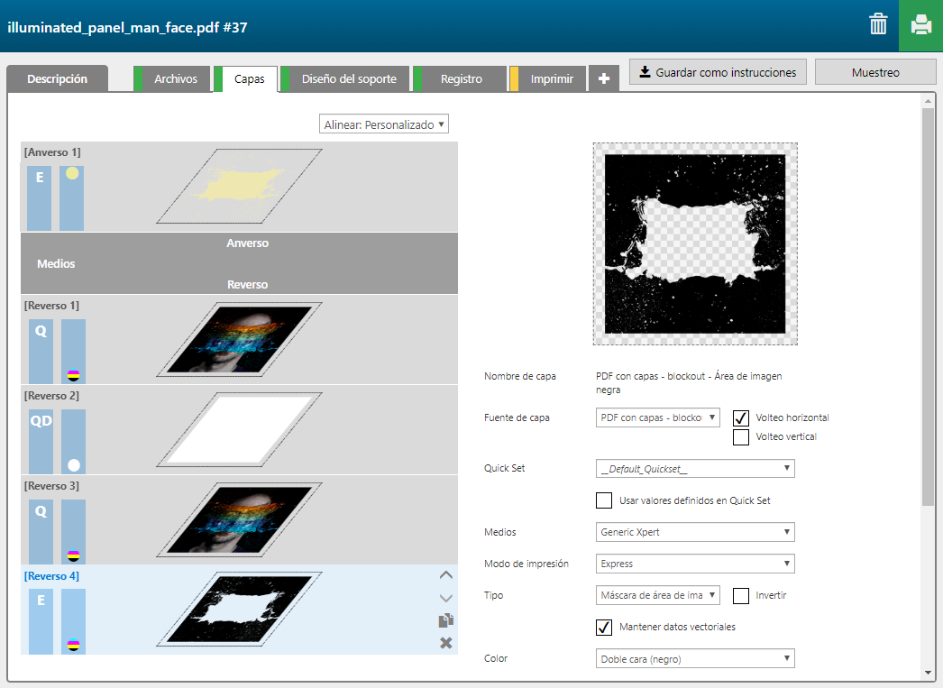 La fórmula 'Illuminated panel' consta de 5 capas: 1 impresa en el anverso del material y 4 impresas en el reverso.