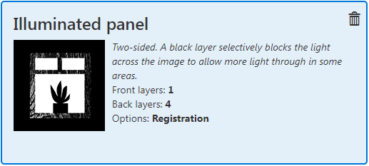 Die Rezeptur [Beleuchtete Platte] enthält 5 Layer, von denen 1 auf die Vorderseite des Materials gedruckt wird und 4 auf die Rückseite.