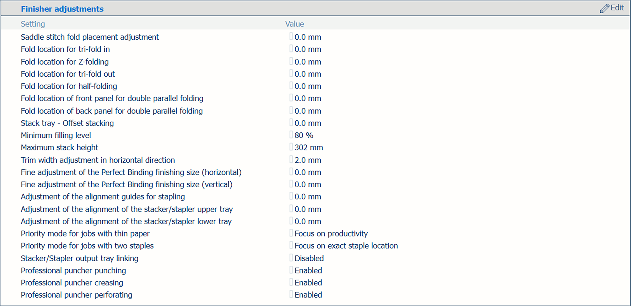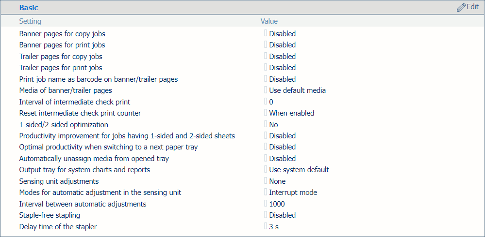 Użyj ustawienia [Taca górna – preferowana krawędź podawania], [Taca dolna – preferowana krawędź podawania] lub [Taca broszur – preferowana krawędź podawania], aby wskazać domyślny kierunek podawania arkuszy na tacę odbiorczą.