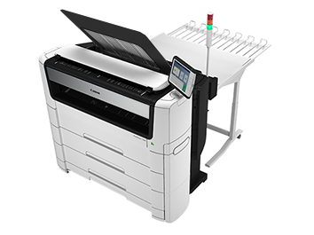 The Stacker Select is a flat tray behind the printer. The stacker can collect a maximum of 400 D-size/A1 prints (75 grams). The Stacker Select is not supported in combination with the folding device. For the Stacker Select documentation is available on the download website (http://downloads.cpp.canon). |