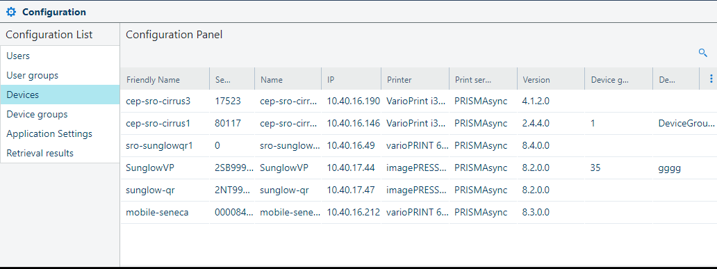 Vous pouvez gérer l'appartenance des périphériques à un groupe à partir de l'entrée [Groupes de périphériques] dans [Configuration].