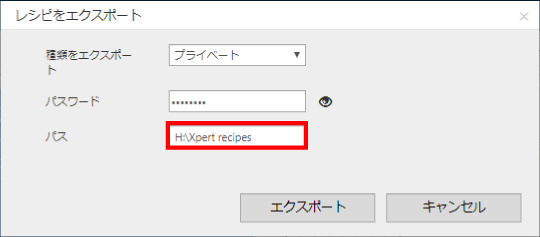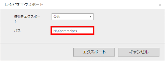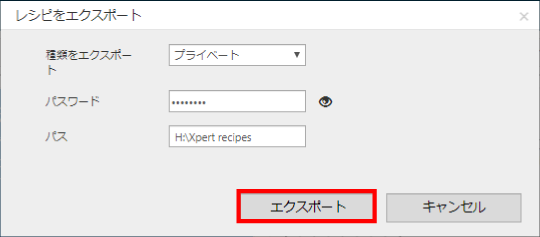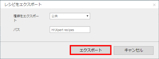 選択するレシピをクリックして、[エクスポート] ボタンをクリックします。