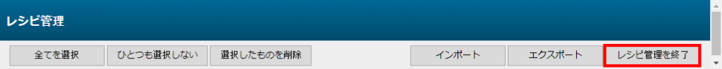 [メニュー] ボタンをクリックして、[レシピ管理] をクリックします。