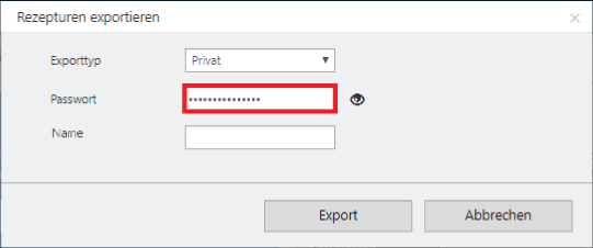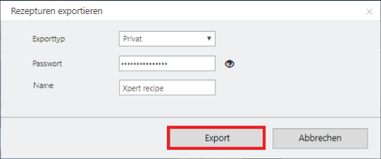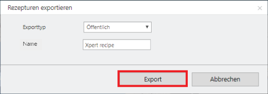 3. Klicken Sie auf [Export], um die Rezeptur auf Ihrem Computer zu speichern.