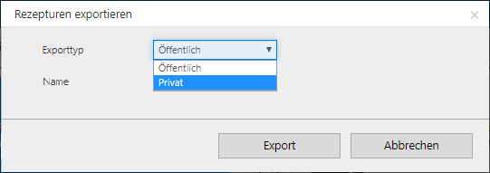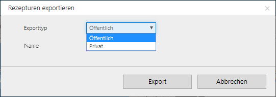 Es gibt zwei Möglichkeiten zum Exportieren der Rezepturen: