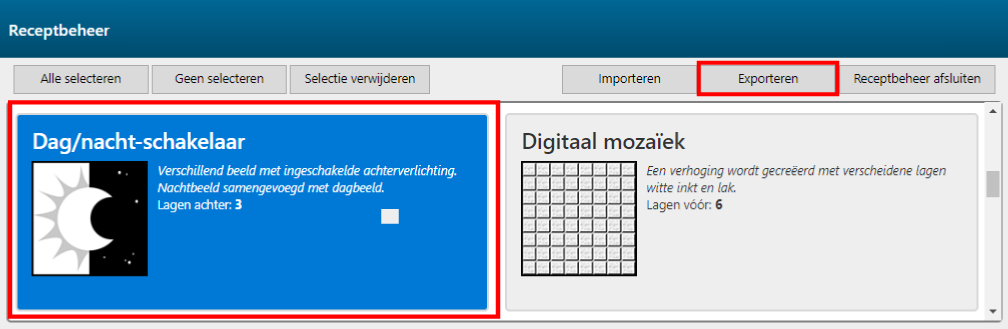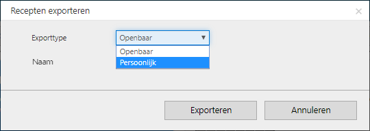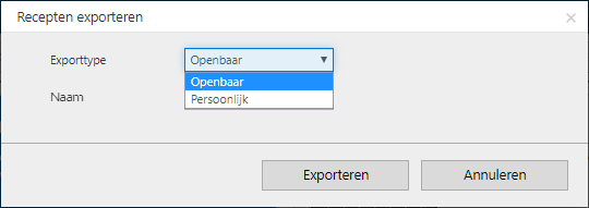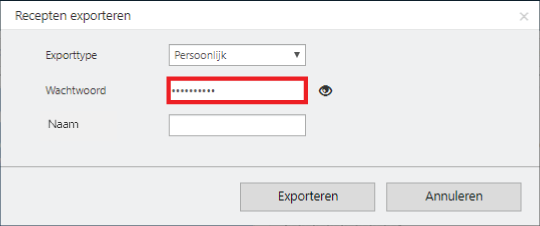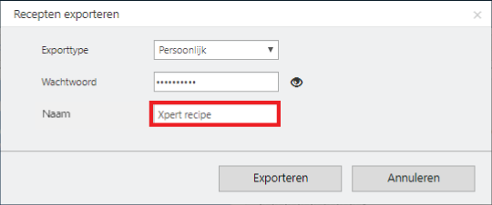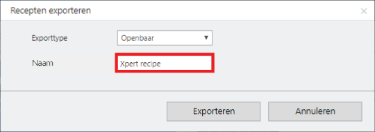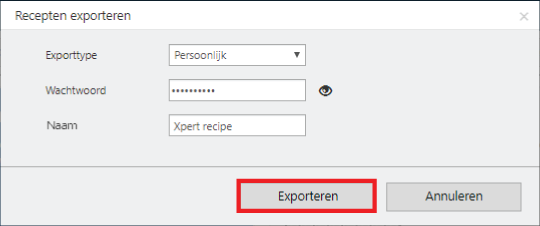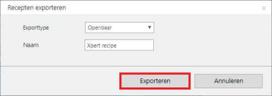 Klik op [Exporteren] om het recept op uw computer op te slaan.