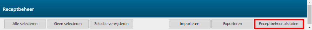 Klik op [Receptbeheer afsluiten] om af te sluiten.